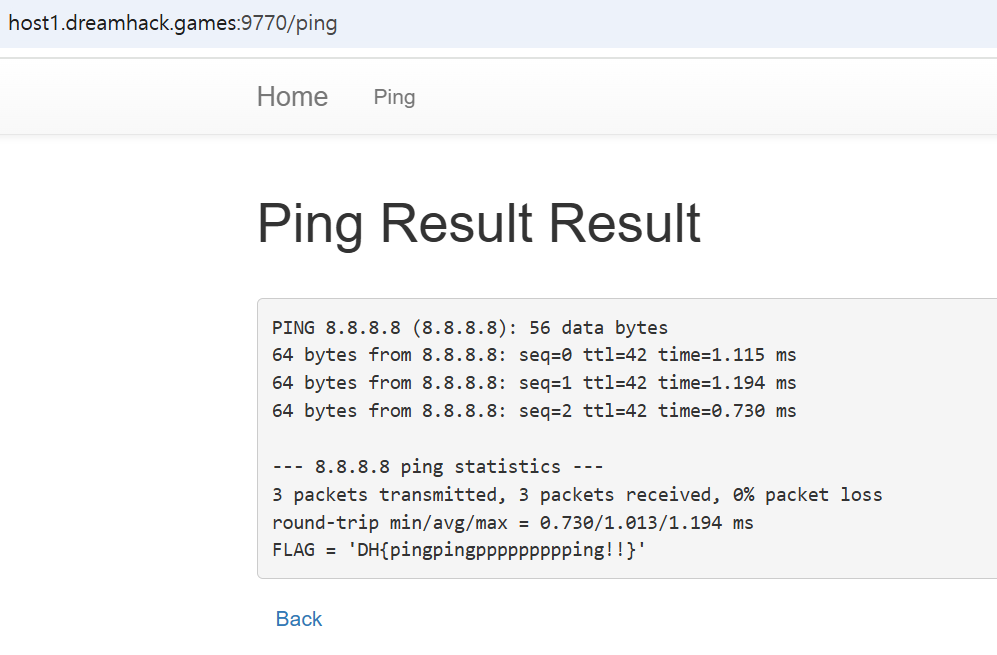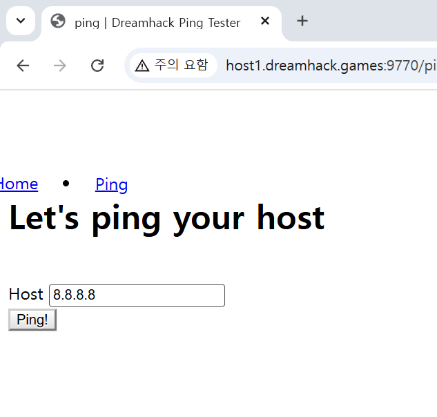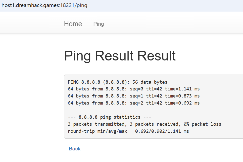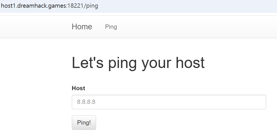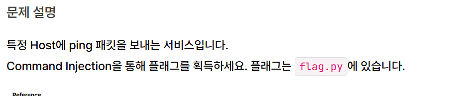 특정host에 ping패킷을 보내는 서비스라고 하고, 운영체제 명령어 삽입을 통해 플래그를 획득할 수 있다고 합니다.