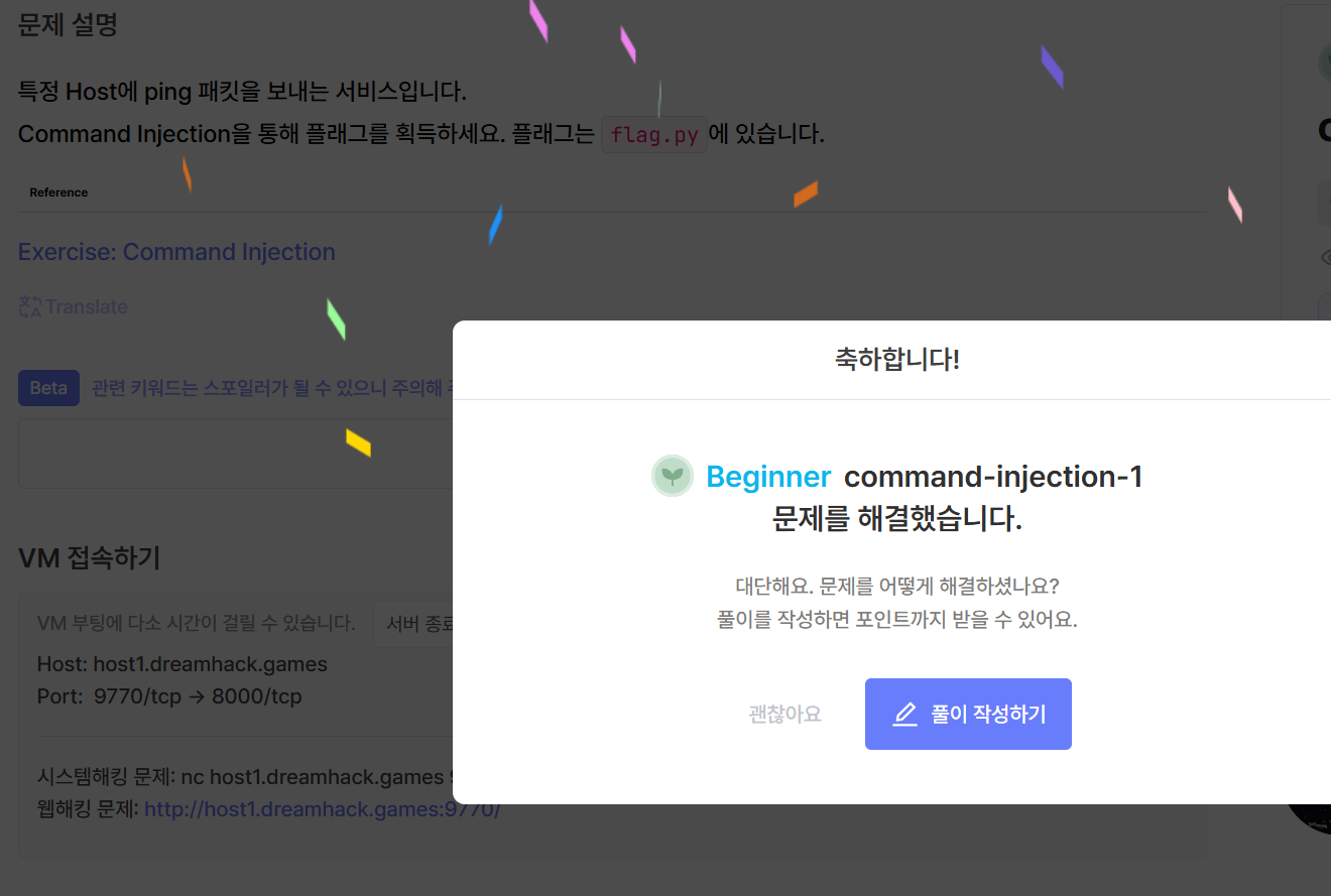 - 예시) ping 8.8.8.8 && cat flag.py