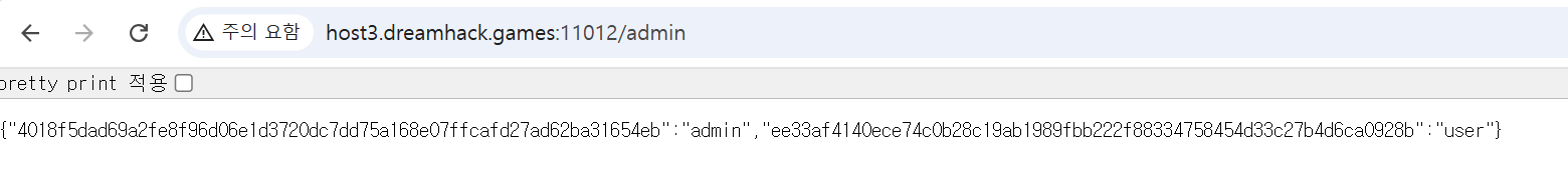 /admin으로 접속해보니, admin 계정의 세션id가 출력되는 것을 확인할 수 있습니다.