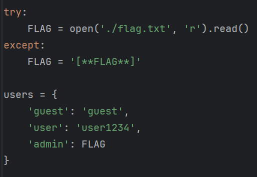 코드를 보면, users 리스트에서 PW를 불러오고, 사용자가 입력한 패스워드와 if 문을 통해 비교를 합니다.